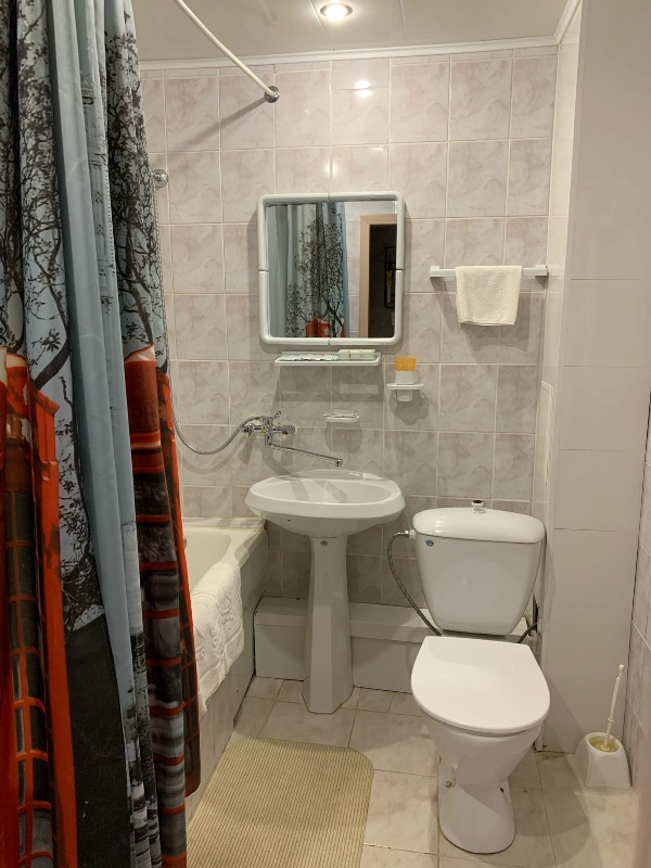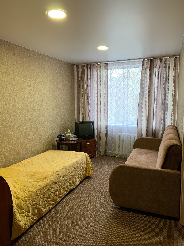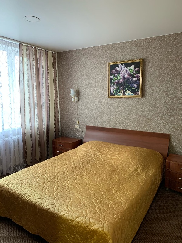 В номере: 2 комнаты, двуспальная кровать, односпальная кровать, диван-кровать(как доп. место), кресло, журнальный столик, 2 стула, телевизор, телефон, холодильник, шкаф для одежды.